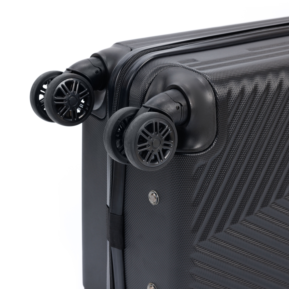 Легкая регулируемая телескопическая алюминиевая ручка и система из 8 колес, вращающихся на 360 градусов, обеспечивает мягкий ход и свободное движение во всех направлениях.