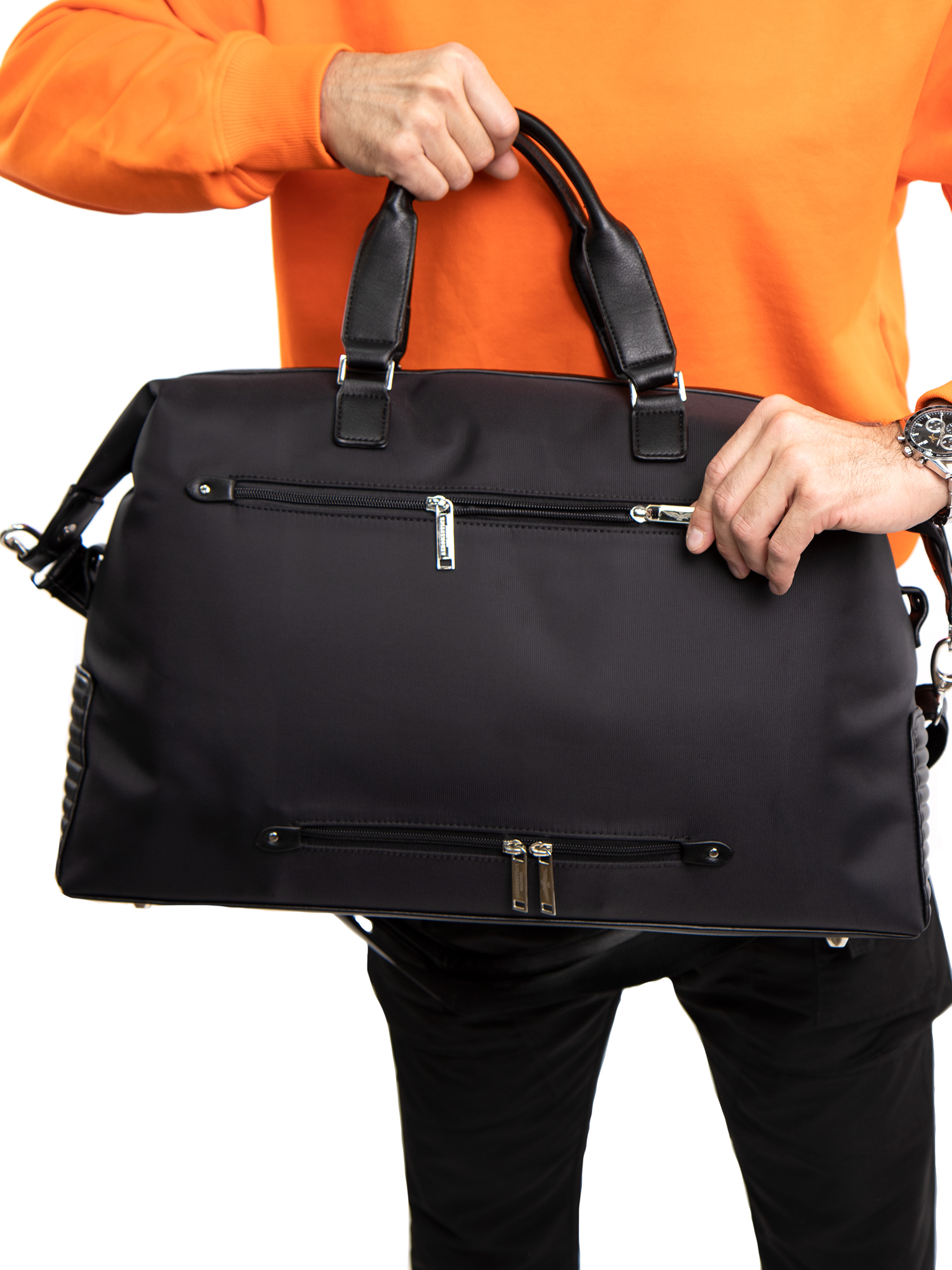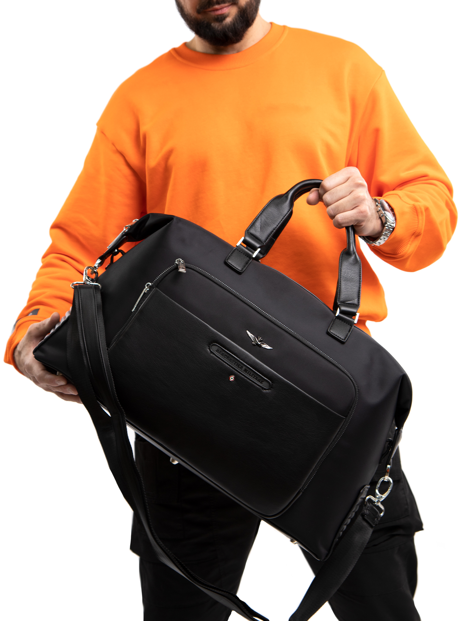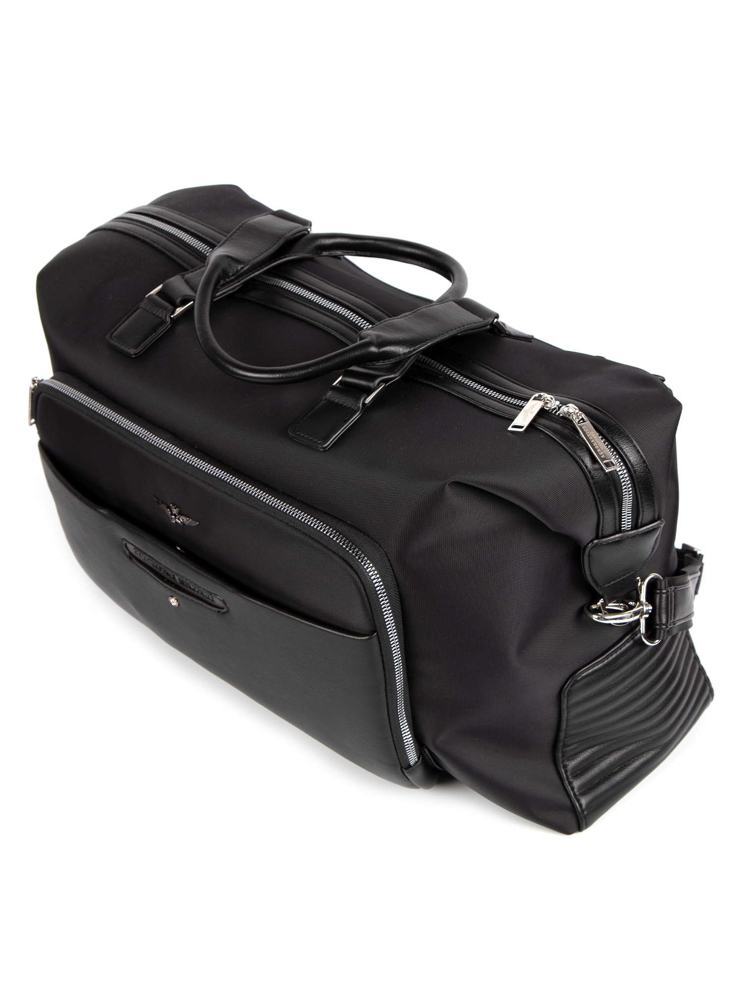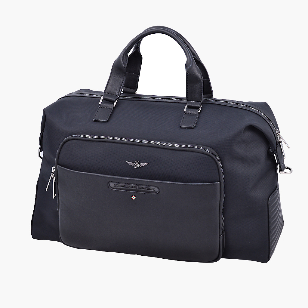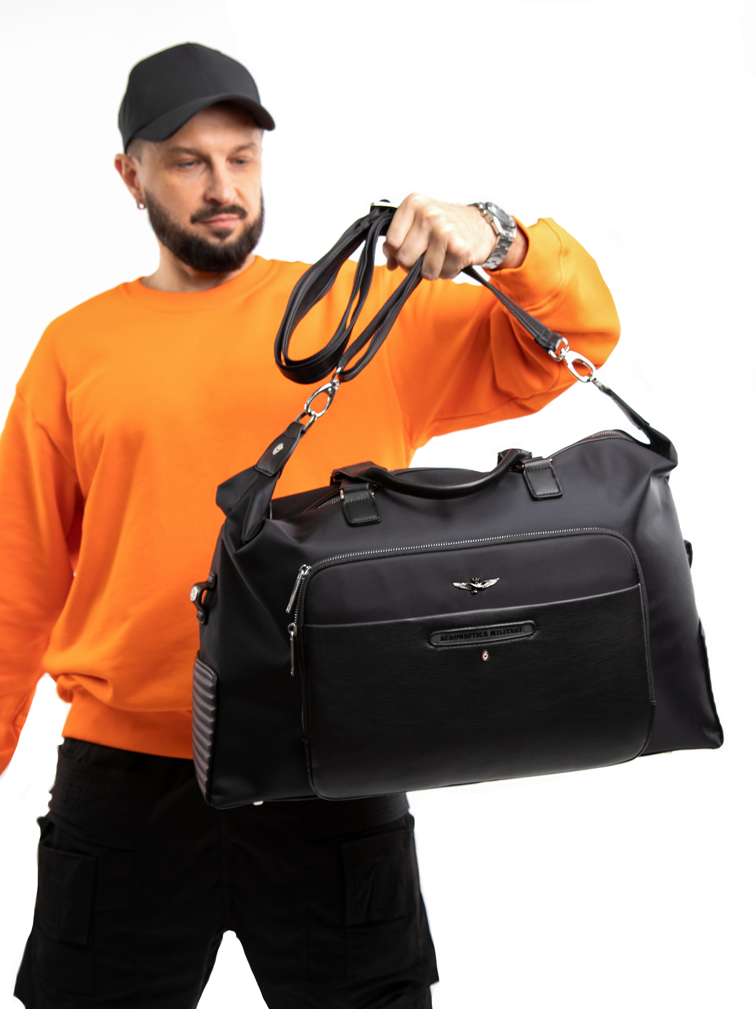 Сумка для путешествия линейки SKY с плечевым ремешком, характеризуется сочетанием двух материалов, искусственной кожи и технической ткани (полиэстер), а также передний карман для смартфона или ключей, который включает в себя логотип Aeronautica Miliare.