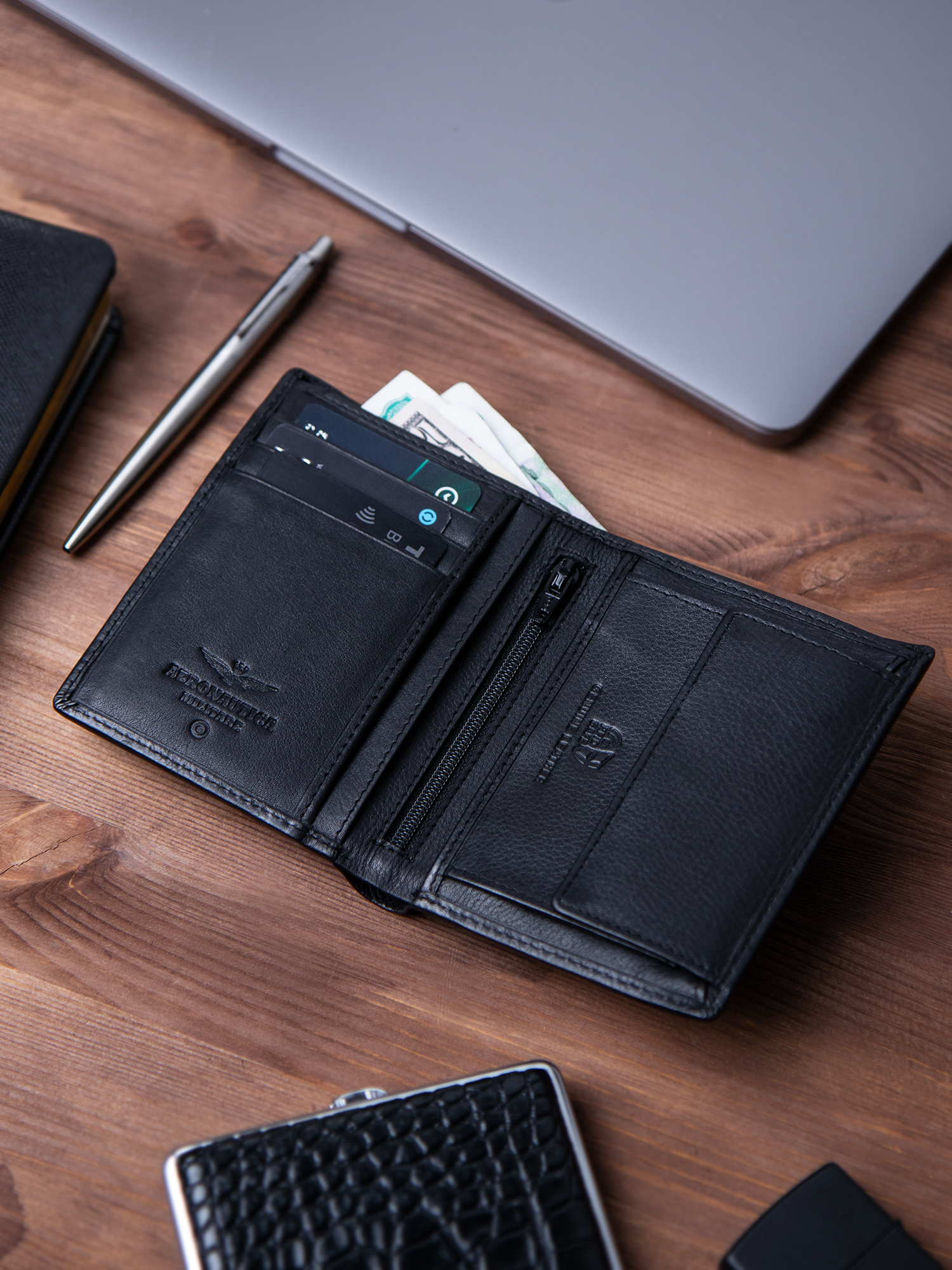 Кожаный кошелек Aeronautica Militare Plate Итальянского бренда представлен в классических цветах. Компактное портмоне содержит 7 отделений для пластиковых карт и евровизиток, имеет внутреннее отделение для монет, которое застегивается на кнопку, и два отделения для купюр. Изготовлен из натуральной кожи.
