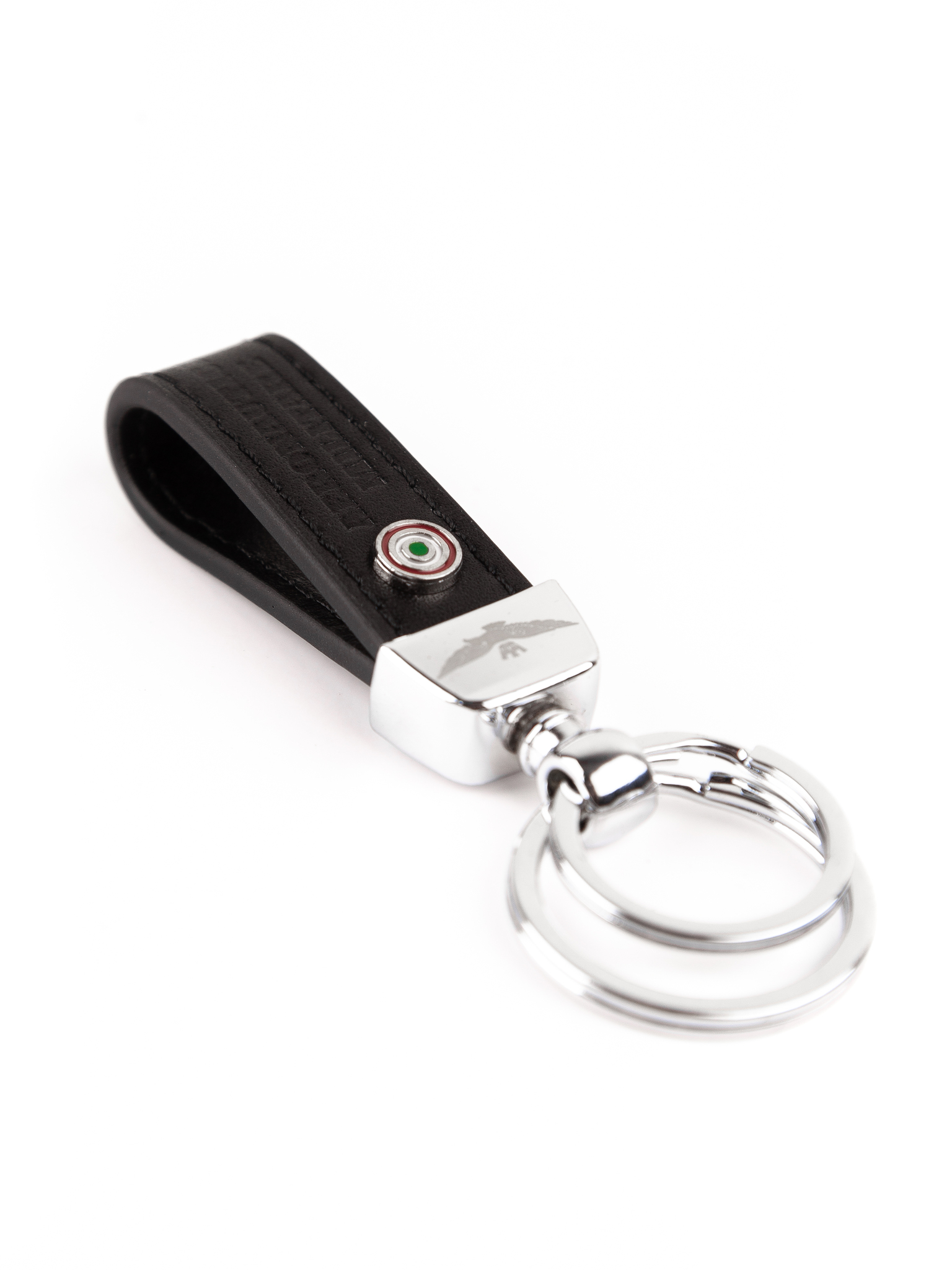 Стильный лаконичный брелок для ключей итальянской фирмы «Aeronautica Militare» с логотипом бренда – практичный и универсальный аксессуар любого современного мужчины и юноши.