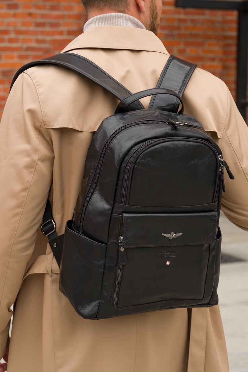 Стильный чёрный и коричневый рюкзак с удобными карманами и внутренним отделом под ноутбук на 13 дюймов. Сделан из винтажной кожи итальянского происхождения и дополнен крепкими лямками в минималистичном дизайне. Металлическая фурнитура позволяет не волноваться, что крепления не выдержат большого веса. Особое тиснение, подчёркивающие естественные складки кожи, аккуратный прошив и качественная молния – носить рюкзак Aeronautica Militare Vintage AM-355 будет одно удовольствие!