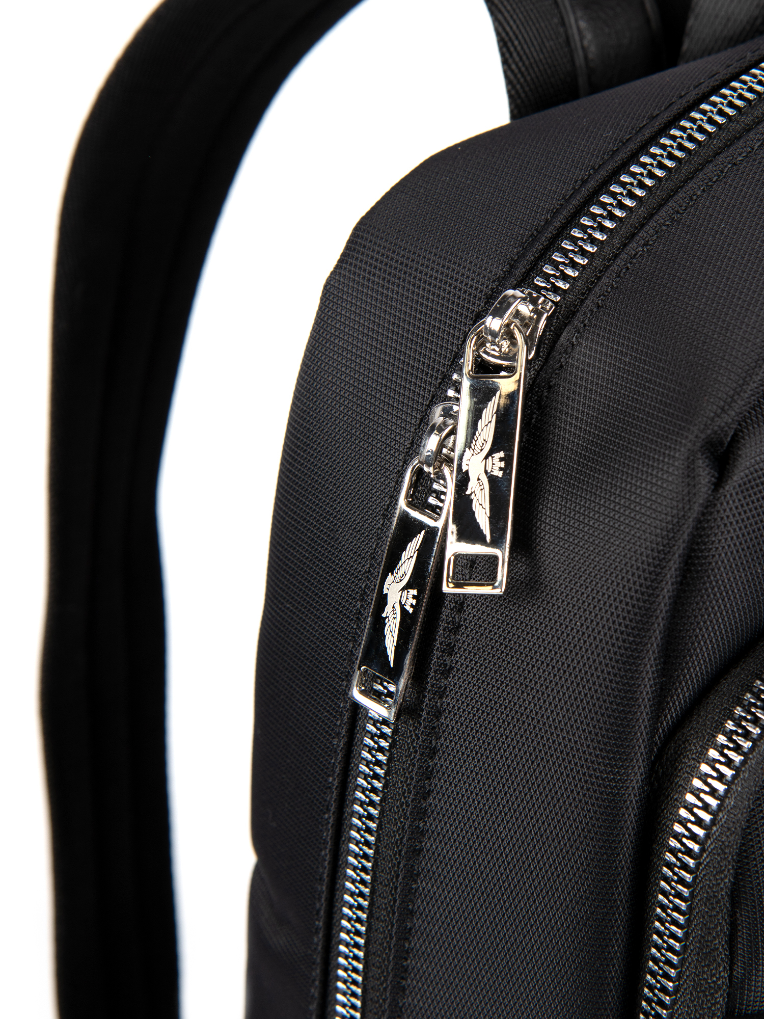Рюкзак имеет три внешних отделения, два внутренних органайзера и один внутренний кармашек на липучке для планшета/ноутбука и один внутренний кармашек на молнии. Также на рюкзаке есть крепление на ручку от чемодана, что делает его очень удобным в использовании во время путешествий или деловых поездок.