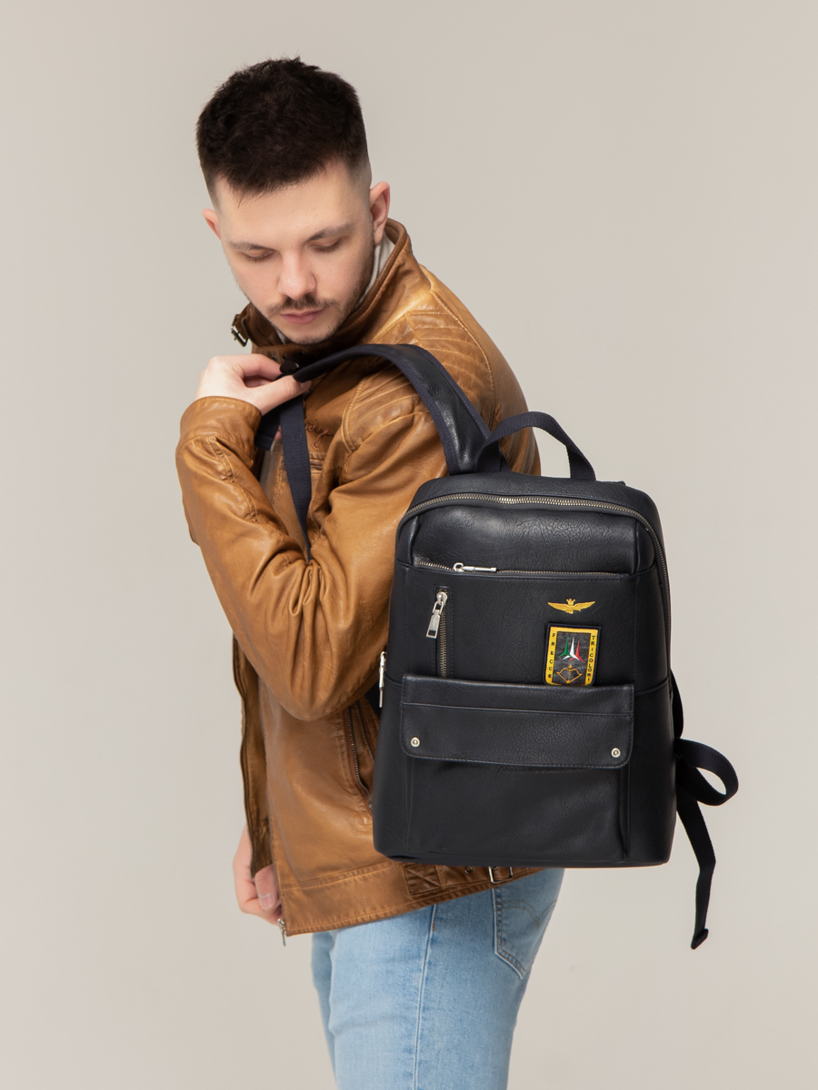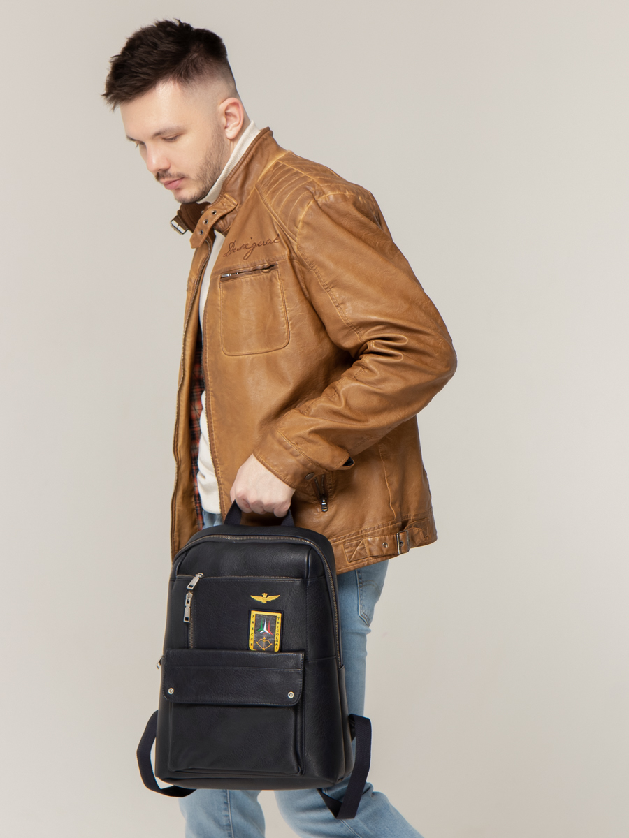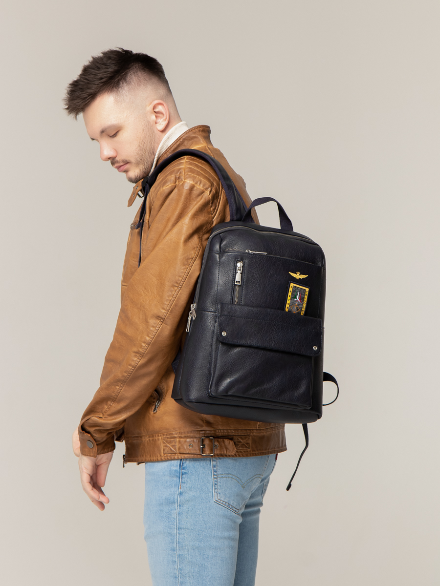 Рюкзак выполнен из искусственной кожи. Особенности: застежка на магните, внутри 1 основное отделение, 3 кармана без застежки, 1 карман на молнии, 3 внешних кармана на молнии, 1 карман на магните, плечевые регулируемые ремни.