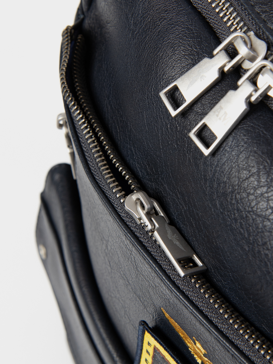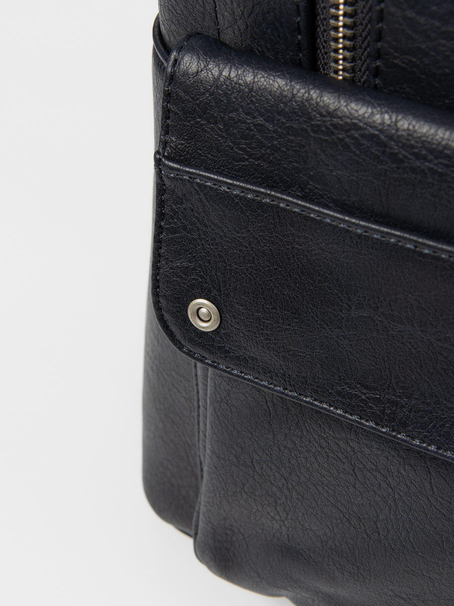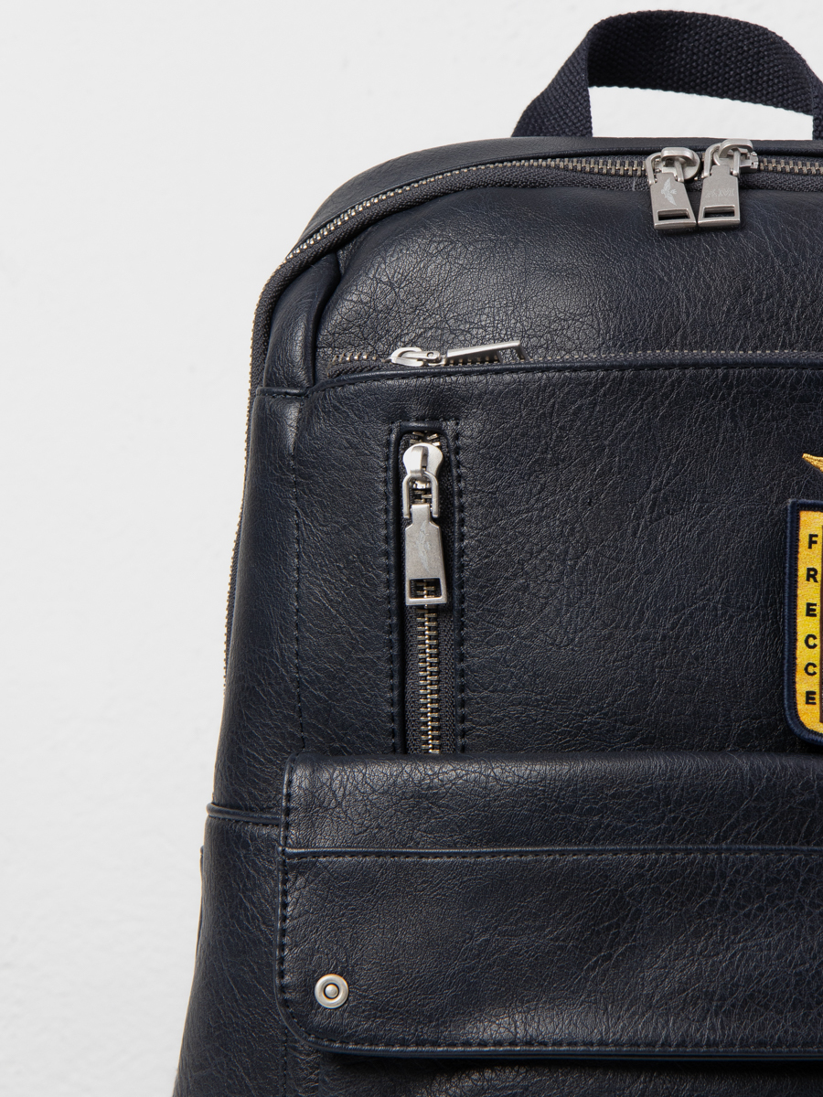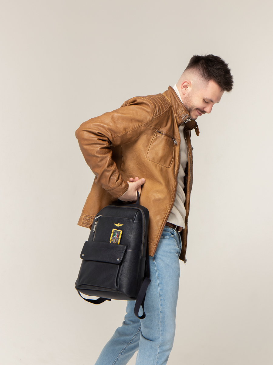 Рюкзак выполнен из искусственной кожи. Особенности: застежка на магните, внутри 1 основное отделение, 3 кармана без застежки, 1 карман на молнии, 3 внешних кармана на молнии, 1 карман на магните, плечевые регулируемые ремни.
